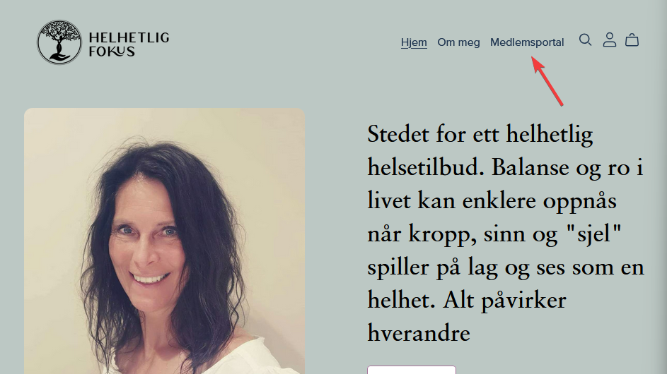 For å logge inn går du til https://portal.helhetligfokus.no/ i nettleseren din(se viktig notat over), og trykker enten på «medlemsportal» og deretter «Jeg er allerede medlem», eller på «bruker» symbolet øverst i hjørnet.