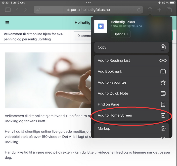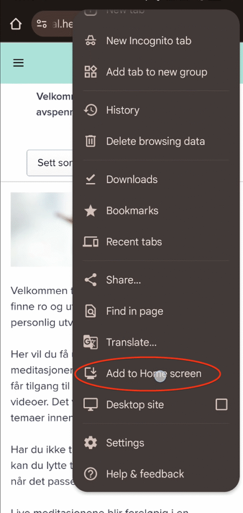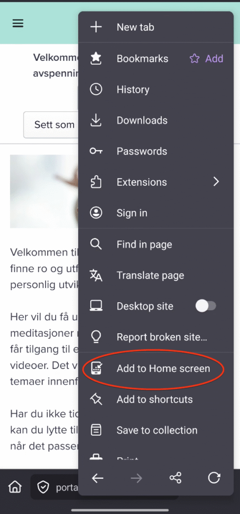 Scroll ned, og klikk på «legg til på hjemmeskjerm» eller «add to home screen»