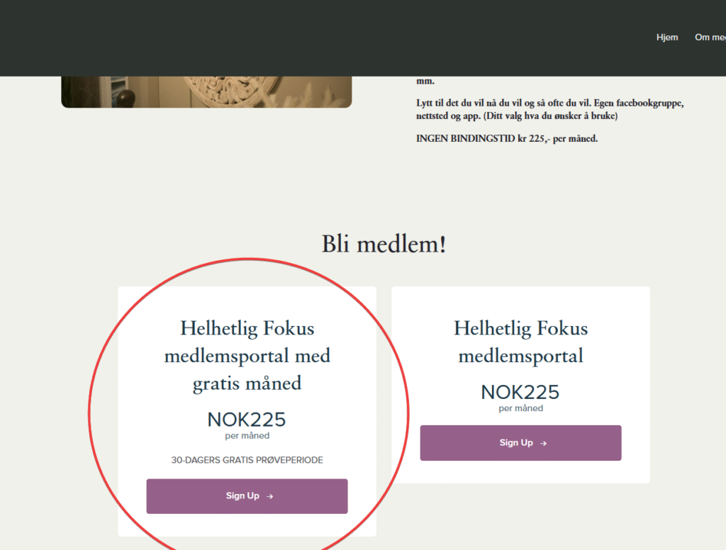 Litt ned på medlemsportal siden ligger det en knapp som heter «sign up», her klikker du for å lage ny bruker.