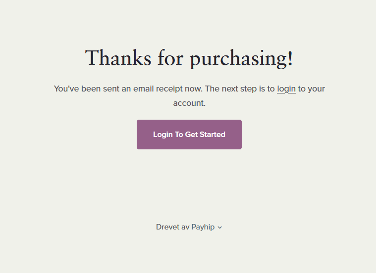 Som meldingen sier, får du kvittering på epost, og kan trykke login for og logge inn.