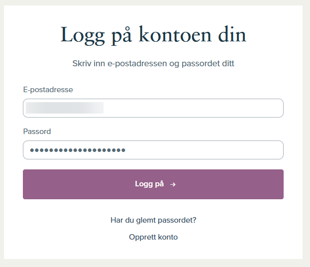 For å logge inn legger du inn brukerinfoen du la inn når du registrerte deg.
