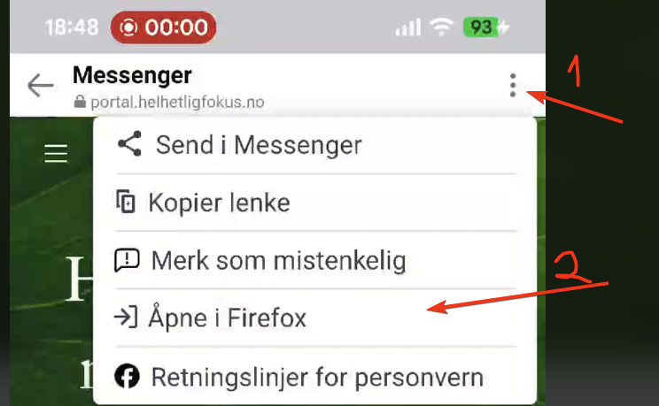 Vær obs på at om du kommer fra messenger/facebook på mobil åpnes ikke linker i nettleseren din, slik at du må trykke på denne knappen for å bruke siden ordentlig.